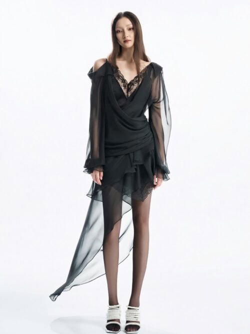 BLACK OFF-SHOULDER MINI DRESS – OR24 02 (B)