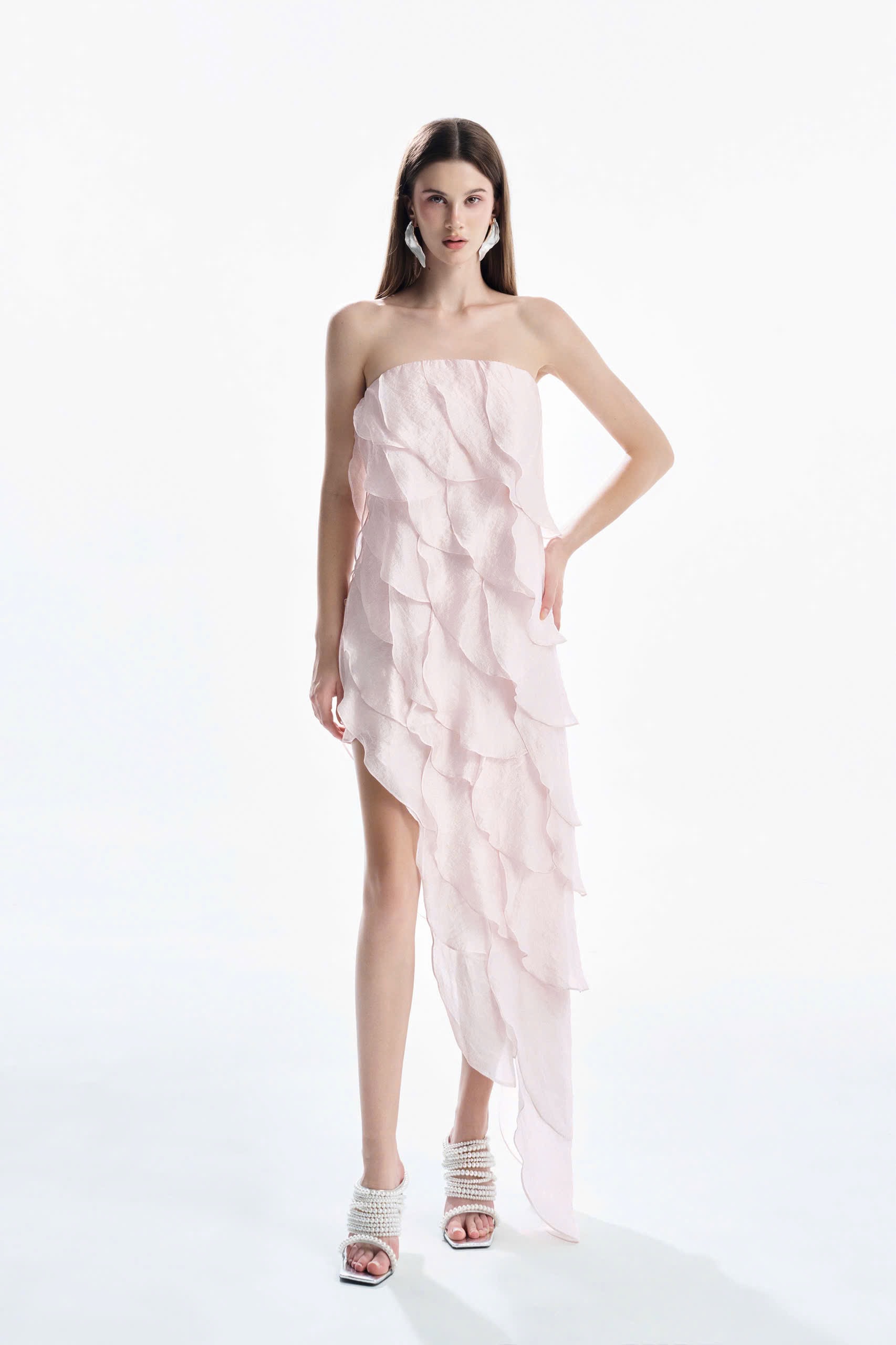 – Strapless, assymetric design